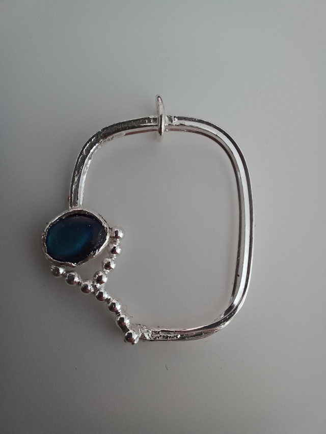 A sterling silver pendant made with hand rolled 925 silver, beaded silver and a fine silver bezel set blue Paua shell. This shell is found in waters off New Zealand. A contemporary twist on a classic framed bezel setting.